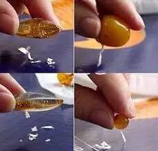 (友情提醒:此试验会对你的首饰带来损伤,挑掉切掉的地方只能找专业人员修补,最好是不做或是少做,以免对琥珀造成损坏)